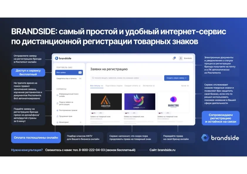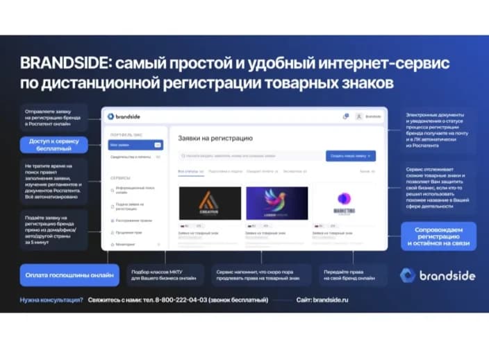 Также мы планируем анонсировать новые полезные функции сервиса Brandside в нашем ТГ-канале и группе ВК и более подробно рассказывать об особенностях регистрации товарных знаков для всех категорий бизнеса.